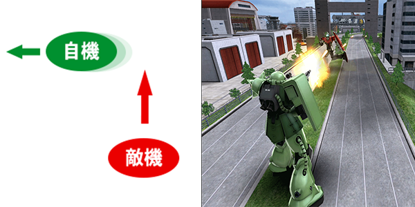 また、敵の射撃攻撃の来る方向に対して横に歩くと弾が当たりにくくなります。
