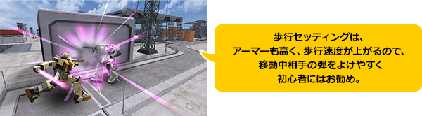 味方の近距離戦型が敵をダウンさせてる間に接近する、味方の遠距離砲撃型を狙ってくる敵を迎撃する、等、孤立せず、味方と協力しながら戦うことで、大きな戦果を得ることができる。