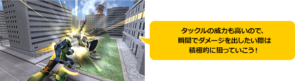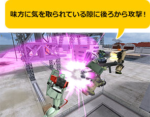 逆に、相手が他のことに気を取られていたり、味方の行動により敵に隙が生じた際などに格闘攻撃ができれば、大活躍することができる。