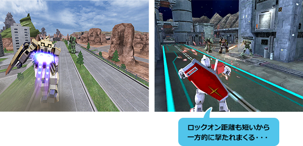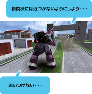 なので、相手に真正面から突進するのではなく、よそ見をしている相手を視界外から攻撃する、上空から奇襲をしかける等、確実に相手に格闘を当てられるタイミングを狙っていこう!
