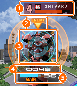 - ①アーマーゲージ(ARMOR GAUGE)モビルスーツの耐久力です。0以下になると撃破されます。